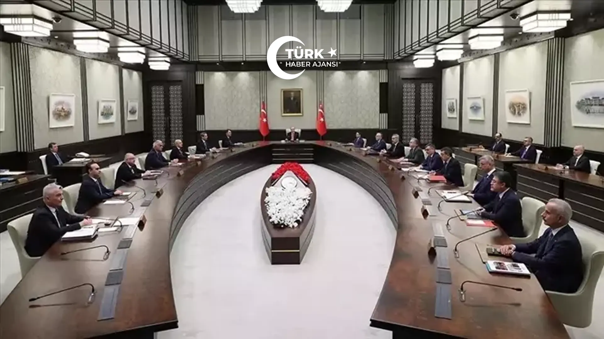 Cumhurbaşkanlığı Külliyesi’nde, Cumhurbaşkanı Recep Tayyip Erdoğan başkanlığında toplanan Cumhurbaşkanlığı Kabinesi sona erdi. Cumhurbaşkanı Erdoğan, ana gündem maddeleri arasında İran’daki savaşın ekonomiye etkileri ve Hürmüz Boğazı’ndaki son durum olan toplantı sonrası açıklamalarda bulunuyor.